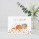 In this watercolor by Daphsam, Thanksgiving-themed elements are beautifully painted. This beautiful holiday moving announcement is made of pumpkins, gourds, autumnal foliage and a Turkey. This is a unique work of hand-painting by Daphsam Photography & Art. To let people know your new address, send a message to your family, friends, and coworkers.