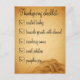 Thanksgiving checklist illustration with wheat on a brown coloured background. The checklist includes the following: roasted turkey, brussels sprouds with almonds, cranberry sauce, sweet potatoes and pumpkin pie.