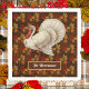 This design features a white Thanksgiving turkey set against a leaf pattern in classic fall colours of red, gold, and brown. Your name appears below in cream script on a colour block of autum brown. This classic look helps provide a festive air for Thanksgiving or fall harvest for you and your family or guests.