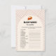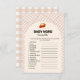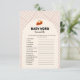 minimalist, scramble word card for baby shower The words on this card are all related to babies and have been scrambled. The guests will compete to see who can unscramble them all first! ANSWER KEY: 1. car seat; 2. milk 3. playpen 4. pacifier The fifth item is a diaper rocking chair. 7. nursery 8. baby monitor; 9. swaddle 10. formula. 11. rubber ducky 12. stroller. 13. monitor. 14. teether. 15. Thermometer.