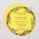A lovely round Thanksgiving Invitation, this item features a yellow background has a red and golden wreath with "Thanksgiving Blessing" in the centre using red and gold. There are templates underneath the design for inserting your information. The font is red. Easily customise font and background colour. This is a wonderful way to invite family and friends to Thanksgiving dinner.