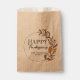 A customisable Thanksgiving favour bag with a hand-drawn wreath of doodle leaves and berries. The design features "Happy Thanksgiving" in a mix of classic and cursive fonts, with space below to add your family name or a personal message.