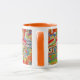 White and orange 11 oz. ringer mug with a vintage 1970s image, on both sides, of an oh-so-70s scene. See matching candy jar, espresso cup, flask, travel/commuter mug, pitcher, shot glass, teapot and coasters. See the entire Disco 70s Mug collection in the FOOD/BEV | Dishes section.