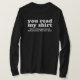 I love this shirt. I had written to the artist asking her if this picture was available on a shirt, and she wrote me back telling me where I could find the shirt. These shirts can be custom made to have a different saying. I loved this saying and went with it. The artist wrote me back later to tell me that she had seen my order go through. How's that for service? Pretty special. It's just as displayed. Perfect!