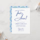 Celebrate in coastal Italian style with this minimalist "That's Amore" bridal shower invitation. The front features elegant handwriting script accents across a crisp white background, with shower details in deep cobalt blue. The reverse showcases a hand-painted watercolor Mediterranean tile pattern, adding a splash of Amalfi Coast charm. Perfect for a couple’s wedding shower or a traditional bridal shower featuring the bride’s name. Customizable and beautifully designed for a chic, timeless celebration.