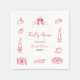 The crisp white background enhances the bold red typography and artwork, giving the napkin a fresh and polished appearance. It adds a cohesive and charming touch to the dessert table, drink station, or place settings.