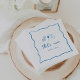 This beautiful Italian inspired bridal shower design features handwritten style cursive lettering accented with a wavy scribble ribbon border in sunny blue. Hand drawn illustrations of bow tie pasta, wine, and a Sicilian lemon complete the design for a summery Amalfi Coast look. These elegant Mediterranean bridal shower napkins feature "that's amore" in hand lettered script with the couple's names beneath.