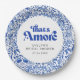 The “That’s Amore” Italian Bridal Shower Paper Plate features a bold blue and white Mediterranean tile design that brings timeless European charm to your celebration. The detailed floral pattern reflects classic Italian ceramic art. The rich cobalt tones create strong contrast and elevate the overall table setting.