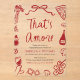 Celebrate your love story in true Italian style with these That’s Amore acrylic invitations! Featuring playful hand-drawn pizza, wine, and romantic doodles in bold red and white, this design brings a fun, rustic trattoria vibe to your engagement party.