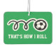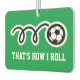 That's how i roll funny soccer ball car air freshener. Custom car air freshener. Upload your own family picture, logo or design with custom text for name, funny quote or monogram. Personalised design to refresh your auto with different cool scents to mask dog / pet smell and other dirty stinky odours. Unique gift idea for men and women who love football. Create your own for soccer player, high school coach, trainer, dad, mum, mother, father, uncle, grandpa, brother, son, sister, wife etc. Make it smell like a fresh new car or the sea. Double sided design. Add your own slogan or saying optionally.