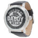This personal wall clock proudly celebrates a father's identity as a truck driver. Against a black background with a white rim, it features a semi-truck silhouette in a distressed white style. The bold, impactful text "THAT'S HOW MY DADDY ROLLS" makes it a perfect tribute from a child to their trucking dad. This clock is an excellent gift to show appreciation for a hardworking father. The design tool can also be used to add custom text if you want your name or company on this clock. You can customise the colour of the frame to any colour you desire by going into the design tool.