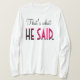 That's What HE SAID. Funny hoody and funny t-shirts with this great infamous saying with get you a laugh all while looking stylish and cute. At least That's What HE SAID... LOL!