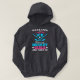 Hockey theme hoodie for the hockey girl with hockey puck and sticks with text of off white, pink, and blue that reads Sugar, Spice and Everything Ice That's What Hockey Girls Are Made Of.