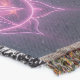 A quality printed throw has its advantages. This is a much finer weave throw than its loopier cousins, and though lighter, it is worth the investment for custom room accessorizing. The back is much prettier than the typical brown, and the fringe on the long sides very vivid, the selvage nicely done. Before photographing, I washed the throw in cold water, delicate, with a thicker woven throw the same size. On tumble dry low, this throw was dry in half the time as the other. This is a very practical quality if you use throws for furniture covers or to wrap up in frequently. The sleekness of the fabric makes it a great layer for accenting or protecting without the feeling of sitting on too much stuff. Perfect for napping or when you feel a light chill coming on. The color printing is beautiful and on this fabric, matched the design and color of my Photoshop image. This is an advantage for blending room fabrics and colors. The fringe on the short sides prints the colors from the design image and therefore varies from the side fringe. I streaked a white fractal line through the plaid pattern to give the illusion of weaving. This printed as crisp as an illusory thread, and put some white in the short side fringe, showing another advantage of print vs loomed- for artistic purposes, line lines, detail, and color integrity can be planned and preserved. My loomed throws have color limitations and more of a needlepoint texture. Print throws reproduce an exact image. The throw felt a little stiff straight out of the package, but this went away in the first delicate wash. Of course I searched the wash water for ink or bleeding and there was none.