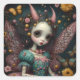 The fairy is dressed in blue with pink wings and little adorable pink horns surrounded by flowers and butterflies