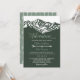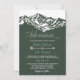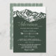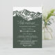 The Adventure Begins Mountain Rustic Mountain Wedding Invitation in Forest Green and White, Arrow Pattern on Reverse Side.