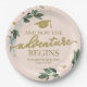 The Adventure Begins Pink Blush Floral Grad Party Paper Plate