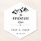 Give your guest a beautiful rustic favour gift with mountain illustration and carefully chosen font for that special look with custom script "The adventure begins" and your monograms and date