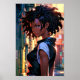 The Afro Heroine embodies the power and grace of a modern heroine, proudly carrying its African origins. His large and majestic hair, symbol of strength and freedom, surrounds a determined and inspiring face. Dressed in an outfit that combines tradition and modernity, she stands up as a protector of her people, merging cultural heritage with a vision resolutely oriented towards the future. This heroine represents the essence of Afro-descendant resilience, beauty and pride, an emblematic figure ready to defend its values and inspire future generations.
