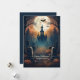 One looks at a card and thinks, "Ah, a simple piece of paper." One is wrong. This is a canvas for an existential diorama, a miniature stage upon which a grand, if slightly ridiculous, drama unfolds. Here, a full moon, a familiar and indifferent celestial body, casts its gaze upon a scene of peculiar architecture. The house, with its impossible angles and disquieting symmetry, looms like a forgotten idea in the centre of the frame. It's a structure that seems to defy all known principles of construction, a building that perhaps only exists in the collective unconscious of a thousand nightmares.
