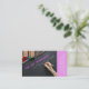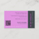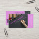 The Art Workshop Pink Artist Business Card shows an art activity on a black surface with art supplies. It has a clean typography, with a pink angled business name on centre and the business services list on front side. The business name at the back is on a black strip vertical position. Also, the business details are in a pink background plus the QR code. The entire concept is contemporary and playful makes it exciting for an artist business card.