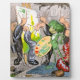Funny illustration by Theodor Kittelsen from his series of water colours entitled “Har Dyrene Sjæl?” (Do Animals have Souls?), published in 1893. This illustration is titled “Brilliant!” A frog with a mop of green hair holding a palette of paint colours looks on proudly at his painting on an easel, while slugs in suits admire his work.