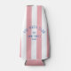 The Bach Club bottle cooler is perfect for your beach club theme bachelorette. Pink cabana stripes with blue distressed custom bach club crest. Personalise with the details of your bachelorette... year, beach and destination. The perfect favours for your beach club inspired bachelorette party or destination bachelorette. Matching accessories available in The Beach Club Cabana Stripe Collection.