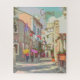This travel poster style digital painting gives you a glimpse into the everyday life on the back streets of Cyprus with the country name in a cool font the the upper right. There are colourful flags and tourists with pretty umbrellas walking the narrow cobblestone streets lined with shops. This design is fast turning into a bestseller!