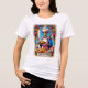 A baker's tee in a trending tarot theme featuring an illustrated baker baking cookies, and surrounded by florals on the edge.