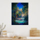 A tranquil sanctuary rests within a grove of towering bamboo, where soft light filters through the trees and glows against ornate architectural details. Gentle steam rises from still pools of water, surrounded by lush foliage and delicate blooms. The scene evokes a sense of quiet retreat and restoration, offering a peaceful escape into a serene and dreamlike natural setting.