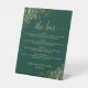 The Bar - Emerald Green & Gold Drinks Menu Wedding Pedestal Sign