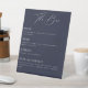 Modern minimalist bar list, wedding sign. Trendy typography design style template in white text on navy blue colour background.