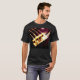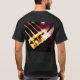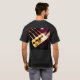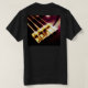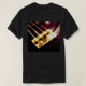 The original abstract photograph by ZoeSPEAK on this T-shirt focuses on the base of an electric bass guitar, the part where the strings begin and rise all the way up to the neck. The closeup photo coloration is done in rich, deep warm browns with a golden light on the metal plate, strings, screws and springs.