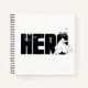 Typography graphic of the word: "Hero", featuring the outline of Batman at the end with a swarm of bats.