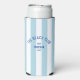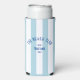 The Beach Club seltzer can cooler is for your group beach trip or get together. Blue cabana stripes with distressed custom beach club crest. Personalise with the details of you beach trip... year, beach and destination. Perfect for a family or friends beach get together or beach club bachelorette or as a memento for a past trip. Matching accessories available in The Beach Club Blue Cabana Stripe Collection.