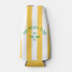 The Beach Club seltzer bottle cooler is for your group beach trip or get together. Yellow cabana stripes with green distressed custom beach club crest. Personalise with the details of you beach trip... year, beach and destination. Perfect for a family or friends beach get together or beach club bachelorette or as a memento for a past trip. Matching accessories available in The Beach Club Cabana Stripe Collection.