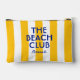 The perfect personalised accessory pouch for you beach essentials... yellow cabana stripes with blue "The Beach Club" lettering. Personalise with the beach destination. Perfect for a group beach trip, a beach club theme bachelorette party or as a memento for a past beach trip. Matching accessories available in The Beach Club Sorrento Yellow Cabana Stripe Collection.