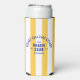 The Beach Club seltzer can cooler is perfect for your group beach trip or get together. Yellow cabana stripes with vibrant blue beach club lettering. Personalise with the details of you beach trip... year and beach destination. Perfect for a family or friends beach get together or beach club bachelorette or as a memento for a past trip. Matching accessories available in Toast On The Coast The Beach Club Yellow Cabana Stripe Collection.