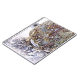 A photographic design of the sea tide washing on to the beach and rocks, exposing the seaweed and barnacles.