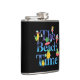 Well made flask, a little better than I had expected. Flask came in clear plastic box which gave it a nice presentation when I took it out of the zazzle packaging. Image is not printed on flask but on sticker. Don't know how this will hold up I haven't used it yet. This would make a Great gift! I plan to purchase more for friends! Cheers. I thought a little brighter than computer. Very crisp, writing wasn't