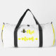This charming black and yellow duffle bag celebrates "The Bee-st Mum" with a cute bee graphic and sparkling stars. The playful design makes it an ideal gift for Mother's Day, birthdays, or any occasion to show appreciation for an amazing mum. Perfect for carrying gym essentials, travel gear, or daily necessities. Edit colour of the bag caps and body in the Design tool to your favored colours.