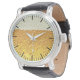 Fun watch design with a closeup of a glass of beer with a frothy beer head.