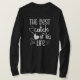 I love this shirt. I had written to the artist asking her if this picture was available on a shirt, and she wrote me back telling me where I could find the shirt. These shirts can be custom made to have a different saying. I loved this saying and went with it. The artist wrote me back later to tell me that she had seen my order go through. How's that for service? Pretty special. It's just as displayed. Perfect!