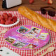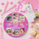 Pink birthday party plates are customisable. The say, "The Best Ever" with a beautiful pastel to neon - like design with violet, yellow, pink and orange hue colours, a matching rainbow and heart, plus 6 photo templates to easily download photos of your 6 "best" on to.