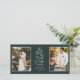 Playful script "The Best is yet to come! (hopefully)", funny quote, holiday photo card in festive rustic green. Scrapbook style photo frames and doodle dots and stripe pattern backing.