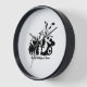 The size of the clock is dramatic and the abstract alcohol ink design is soothing and intricate at the same time. I chose the black frame that adds pop to the blue and gold design. The gold printing would be better in a slightly darker or larger font. I love it and I’m looking for just the right place in ny new apartment. I would recommend this clock for a personal gift or a present. I feel that the quality is excellent for the money! I’m a bit of a clock nut so I’m pretty particular about my purchases. The clock is larger in diameter than many if the clocks I have, so it stands out very well. I think a slightly darker printing color and a moderately larger size would best suit a professional decor or add more impact in a work place item.