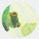 The big-eyed green frog behind lily pad. Frog in a pond.