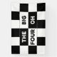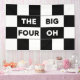 40th birthday party banner features a bold black and white checkered pattern with the words "The Big Four Oh" in alternating white on black and black on white text.