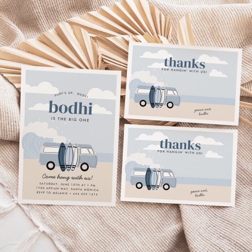 The BIG ONE Boys' 1st Beach Surf Birthday Invitation