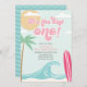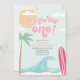 It's The Big One! Surfing Beach Birthday invite with turquoise waves and pink surf board.